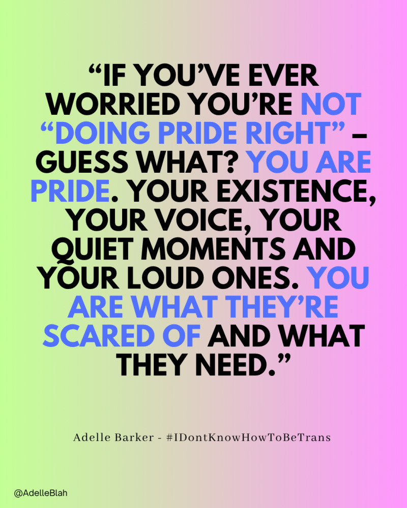 If you’ve ever worried you’re not “doing Pride right” – guess what? You are Pride. Your existence, your voice, your quiet moments and your loud ones. You are what they’re scared of and what they need.